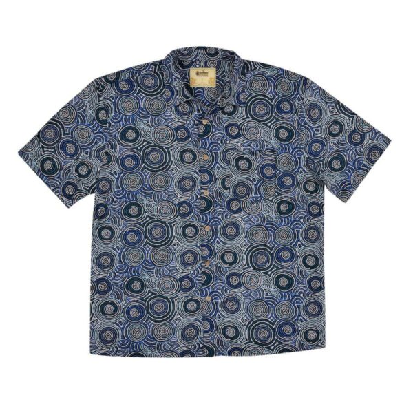 This ‘Jukurrpa” (Dreaming) comes from Mina Mina, a very important women’s Dreaming site far to the west of Yuendumu near Lake Mackay and the WA boarder. The ‘kirda’ (owners) of this Dreaming are Napangardi/Napanangka women and Japangardi/Japanangka men; the are is sacred to Napangardi and Napanangka women. There are a number of ‘mulju’ (water soakages) and a ‘maluri’ (clay pan) at Mina Mina.